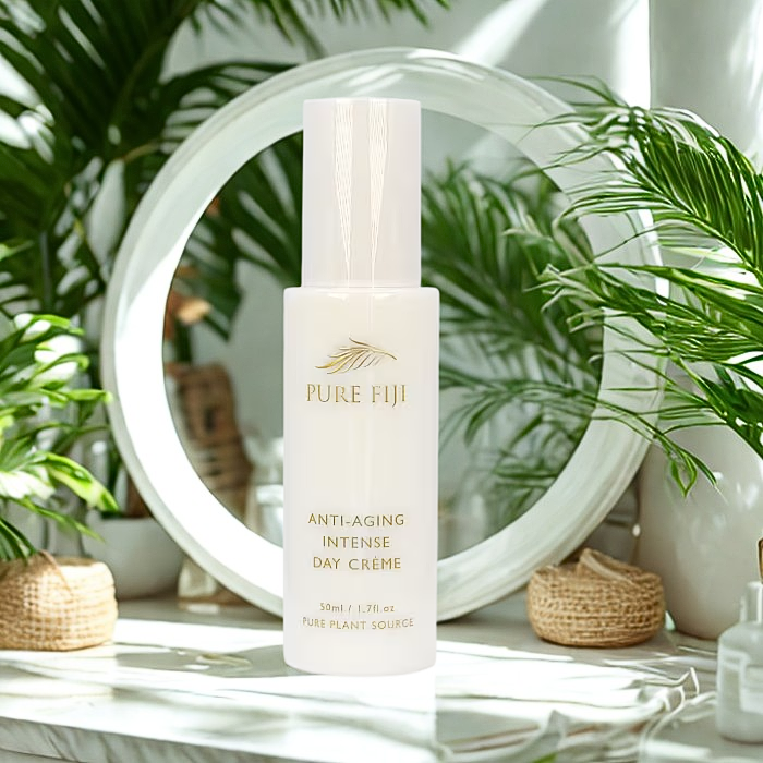 Pure Fiji Intensywny Krem Przeciwstarzeniowy zawiera unikalną kompozycję składników, poprawiającą jędrność i sprężystość skóry. Bogata, niezwykle odżywcza i nawilżająca formuła została stworzona do zmniejszenia oznak starzenia się skóry poprzez jej odnowę komórkową, intensywną rewitalizację oraz głębokie odżywienie. Krem zawiera bogate w składniki odżywcze olejki organiczne z Kokosa, Makadamii, Dilo i Sikeci, a także kilka rodzajów peptydów, kolagen roślinny, hydrozole i cenne ekstrakty roślinne.